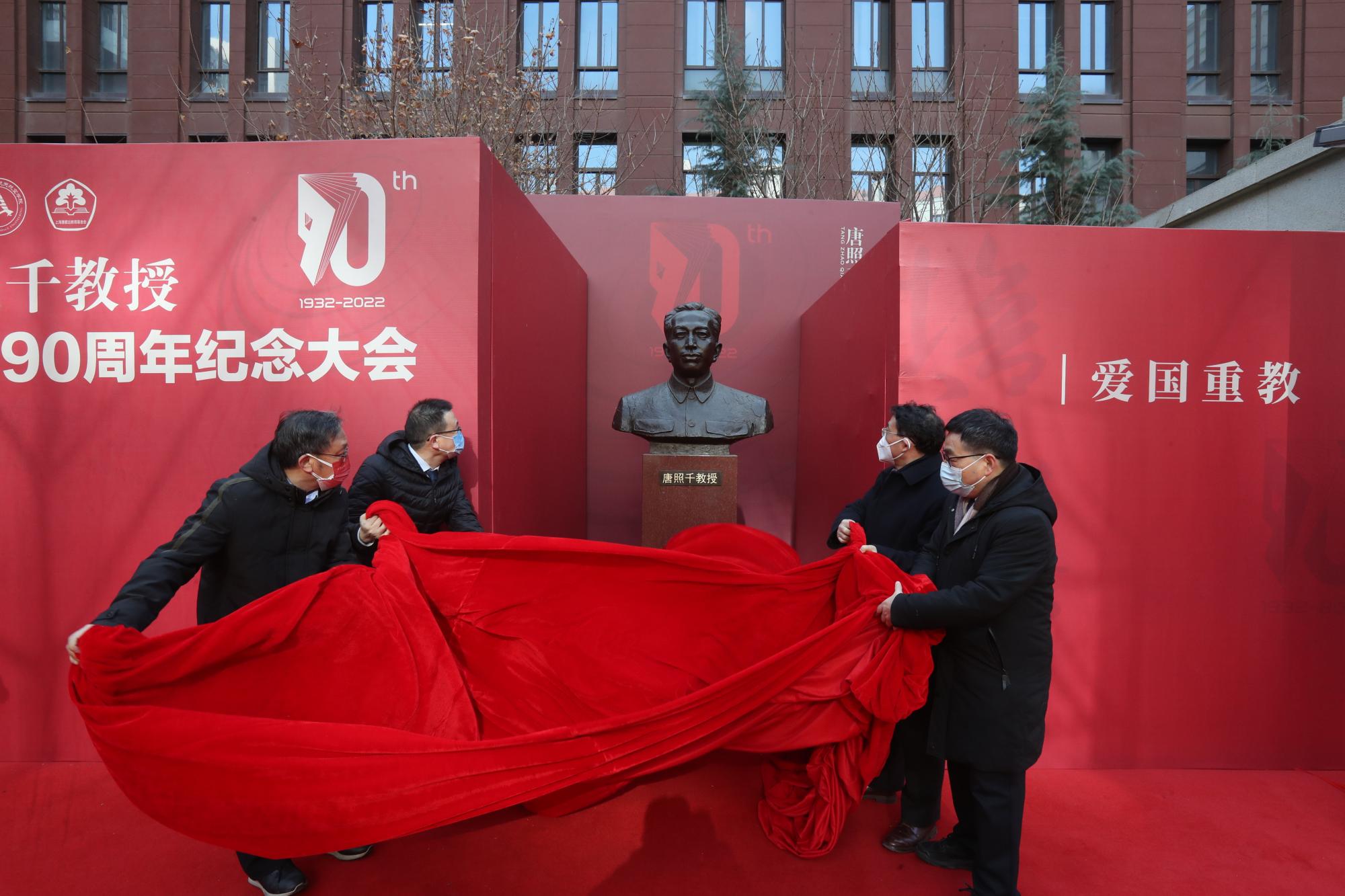 席光副校长、申胜平院长、何茂刚书记、王秋旺处长、共同为唐照千雕像揭幕。