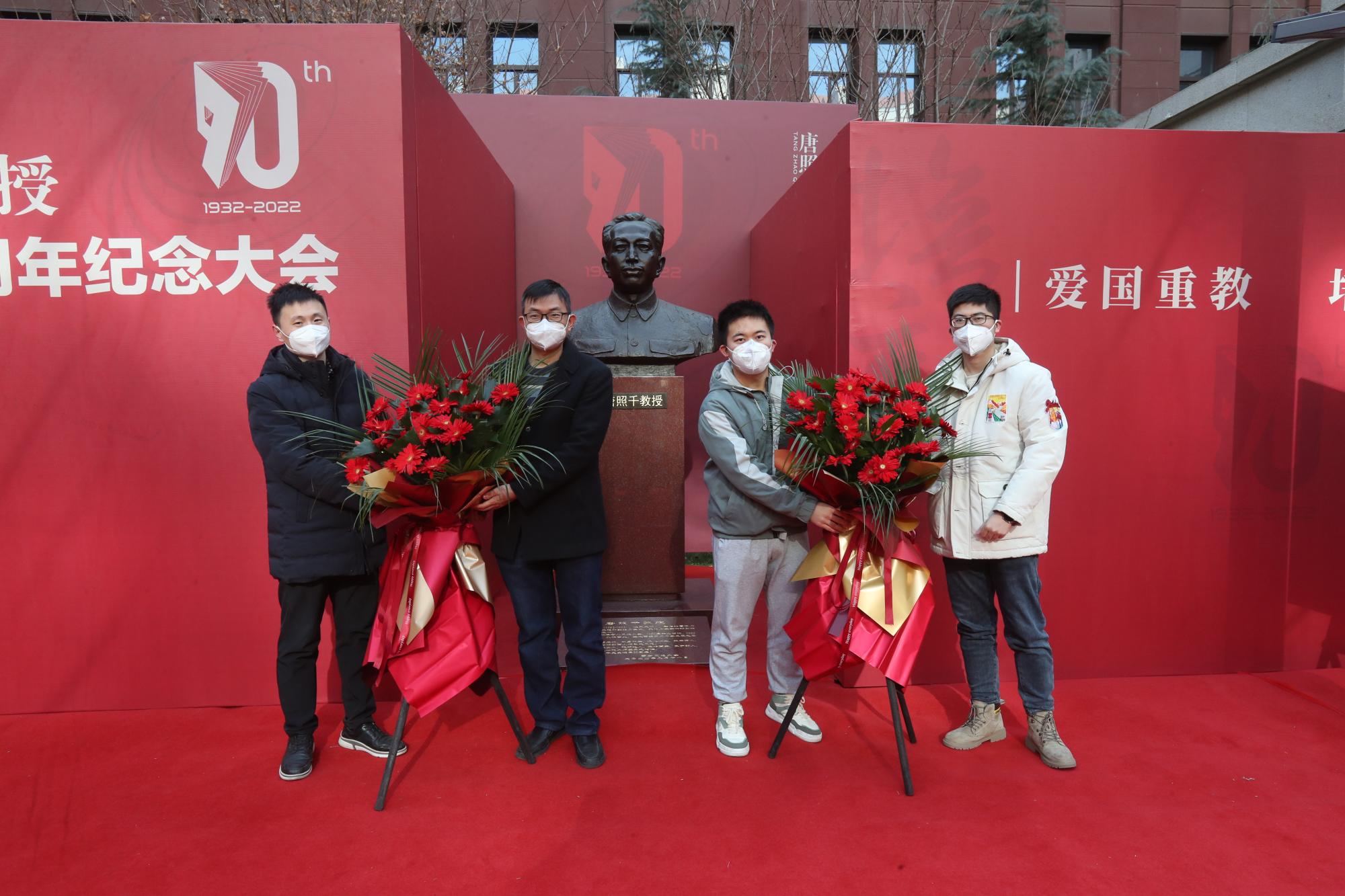 师生代表卢同庆教授、刘益伦教授,王一凡同学、张一鸣同学共同向唐照千雕像敬献了花篮,表达对唐先生的追思和敬意。