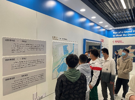 组织2022级新生赴创新港数字展厅参观学习。创新港数字展厅位于涵英楼东侧,是代表创新港科学研究、建设理念、发展进程的标志性参观地点,其中分成五个模块:“使命感召应运而生”、“国家样板全球高地”、“时代引领 大港崛起”、“创新引擎科研集群”及“扬帆致远世界之光”。通过数字展厅内文字、图片、立体视频的形式观看了交大的百年建校史和迁校史,有效提升了同学们对于学校发展历史、西迁精神以及创新港建设的理解。