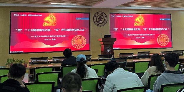 北京大学博士生讲师团郭文杰带领大家系统学习了关于党代会的知识,从二十大报告起草的历程到报告蕴含的重要精神内涵,使得与会同志对二十大报告形成了深刻认识,并明确了党在新时期实现中国式现代化的重要决心和伟大历史使命。随后,北京大学、清华大学、复旦大学、上海交通大学、浙江大学、西安交通大学的学生党支部代表结合各自学校的发展历程、内涵特色,分别围绕“五四精神”、“两弹一星功勋精神”、“望道精神”、“钱学森精神”、“红船精神”、“西迁精神”,重温了党的红色精神谱系进行介绍和交流,引发了师生们强烈反响。