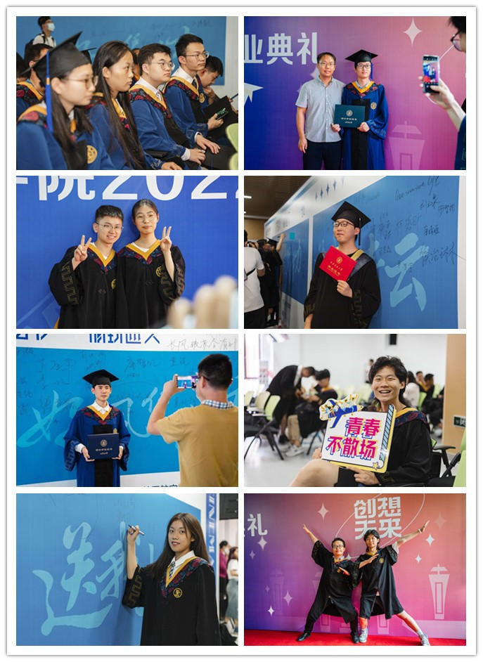 毕业典礼结束后,同学们纷纷在签名墙前签名、留影,镌刻青春记忆。