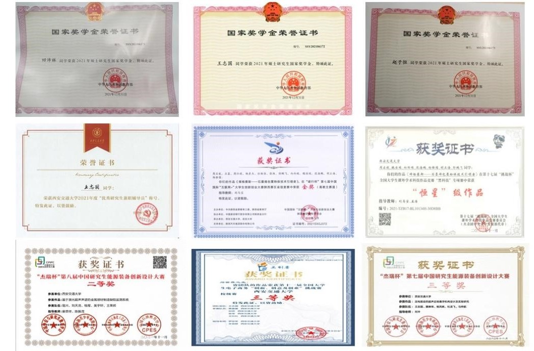 支部成员始终坚信梦想和知行合一,不断在学术研究、科研项目及各类科技竞赛上取得优异成绩。截至目前,支部成员共计发表期刊论文15篇(其中SCI论文8篇),会议论文6篇,授权发明专利3项,软件著作5项,16名同志获得18项省校和国家级各类竞赛奖励。其中,2人荣获“建行杯”第七届中国国际“互联网+”国家级金奖、2人荣获第十七届“挑战杯”竞赛“黑科技”专项一等奖,2人获中国·铜川秦创科技大赛校园组冠军,2名成员荣获“杰瑞杯”第七届中国研究生能源装备创新设计大赛国家级二等奖,3名成员荣获“杰瑞杯”第七届中国研究生能源装备创新设计大赛国家级三等奖,1名成员在中国研究生电子设计竞赛获西北赛区一等奖。此外,支部成员共计13人参加国内外学术会议20次。支部共有13人获优秀研究生、优秀研究生干部、优秀兼职辅导员等校级荣誉。共3人获得国家奖学金,7名成员获得各类社会奖学金,支部党员获得特等及一等学业奖学金覆盖率达83%。