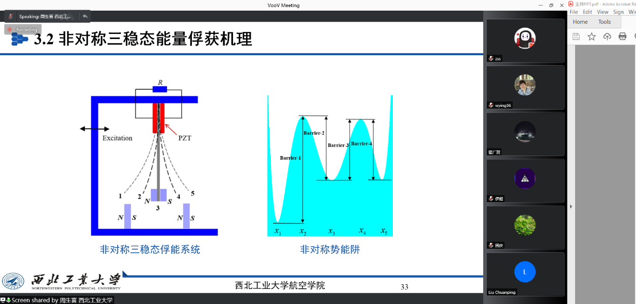 周生喜教授在以线上形式作题为“非线性振动能量俘获机理及其应用研究”的学术报告。本次会议由徐业银老师主持,50余名学者、师生参加了本次学术报告。