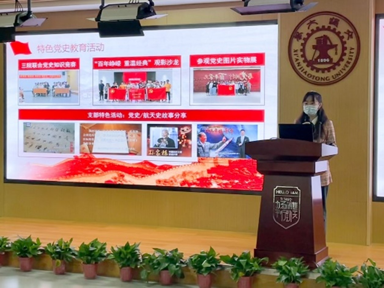 20级硕士第二党支部书记向雨嫣从支部概况、理论学习情况、特色党史教育活动、“我为师生办实事”活动、党员先进性五个方面介绍了硕士党支部的基本情况。赌博网站