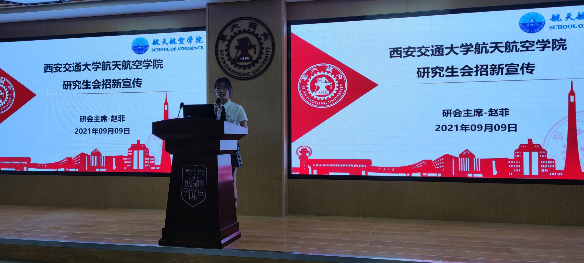 研究生会的组织架构、各部门职能分布和工作展示进行了详细的介绍,热情邀请2021级新生加入研会,服务航院师生,筹划航院活动,讲述航院故事,推动航院发展。
