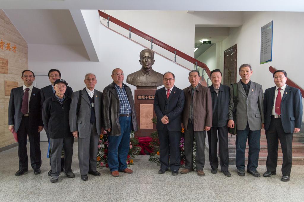 2016年4月,朱继梅教授(左三)见证唐照千塑像落成