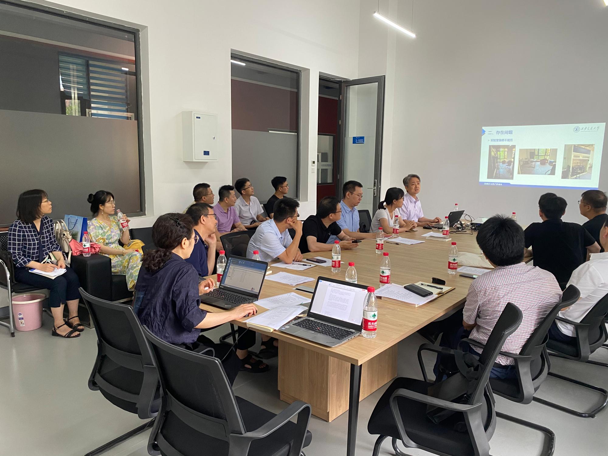 党委书记李小跃传达了学校7.14校园安全工作专题会精神,对实验室技术安全管理中的装修规范、危化品使用等关键问题和校园重点安全风险隐患进行了强调。