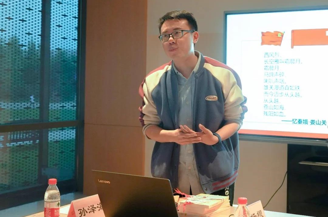 2019级博士生孙泽海向大家分享书目《大河向东:他们为什么追随毛泽东》。他以毛泽东的一首气势豪迈的诗词——《忆秦娥·娄山关》作为开场,从周恩来、朱德、贺龙、罗荣恒、叶剑英等人对毛泽东的不同评价中展示了毛泽东高瞻远瞩、决策英明、受人敬重的形象。