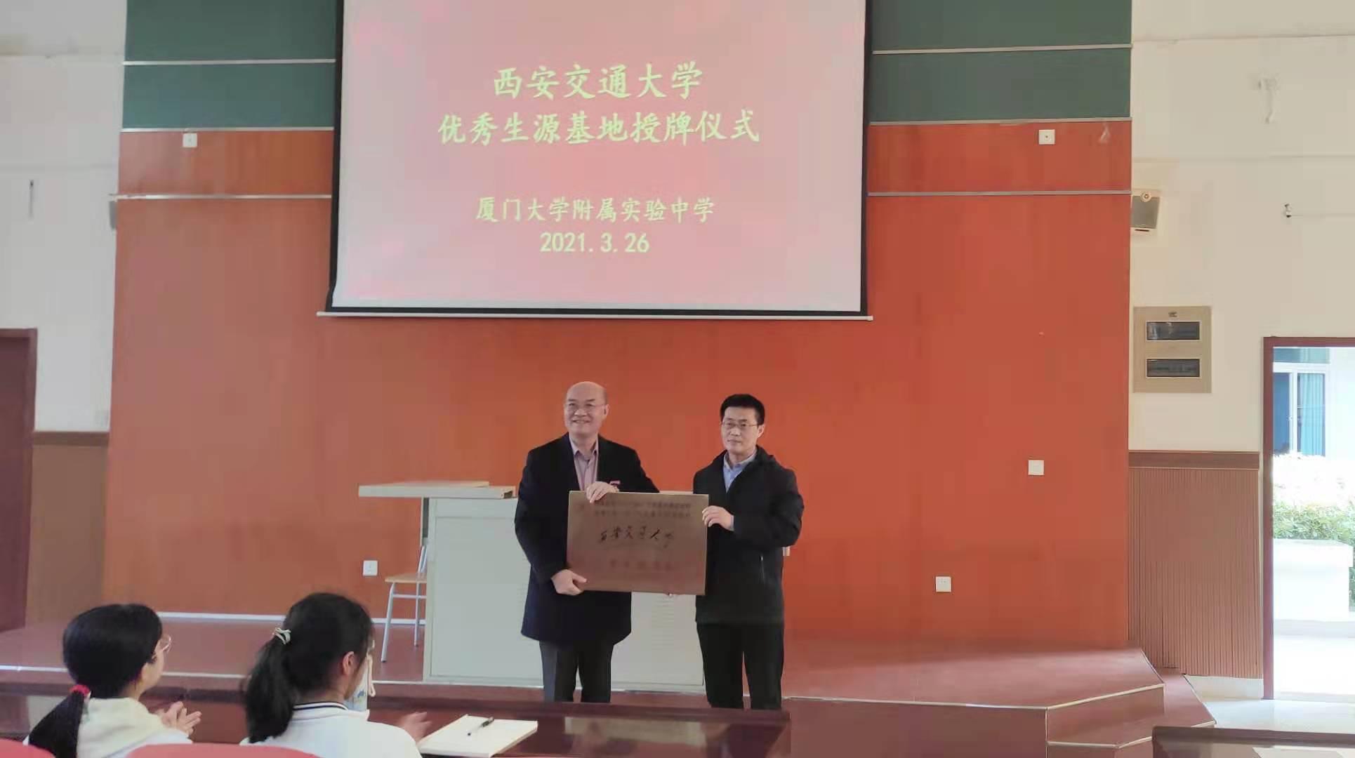 3月26日,西安交通大学“优秀生源基地”授牌仪式在厦门大学附属实验中学报告厅举行。西安交通大学赌博网站