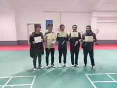的混双搭档参加。经过四轮循环赛和淘汰赛,最终决赛为三局两胜21分制,双方紧咬比分,为同学们奉献了一场精彩绝伦的双打决赛!最终混合双打决出冠亚军、一等奖1组、二等奖2组、三等奖4组。
