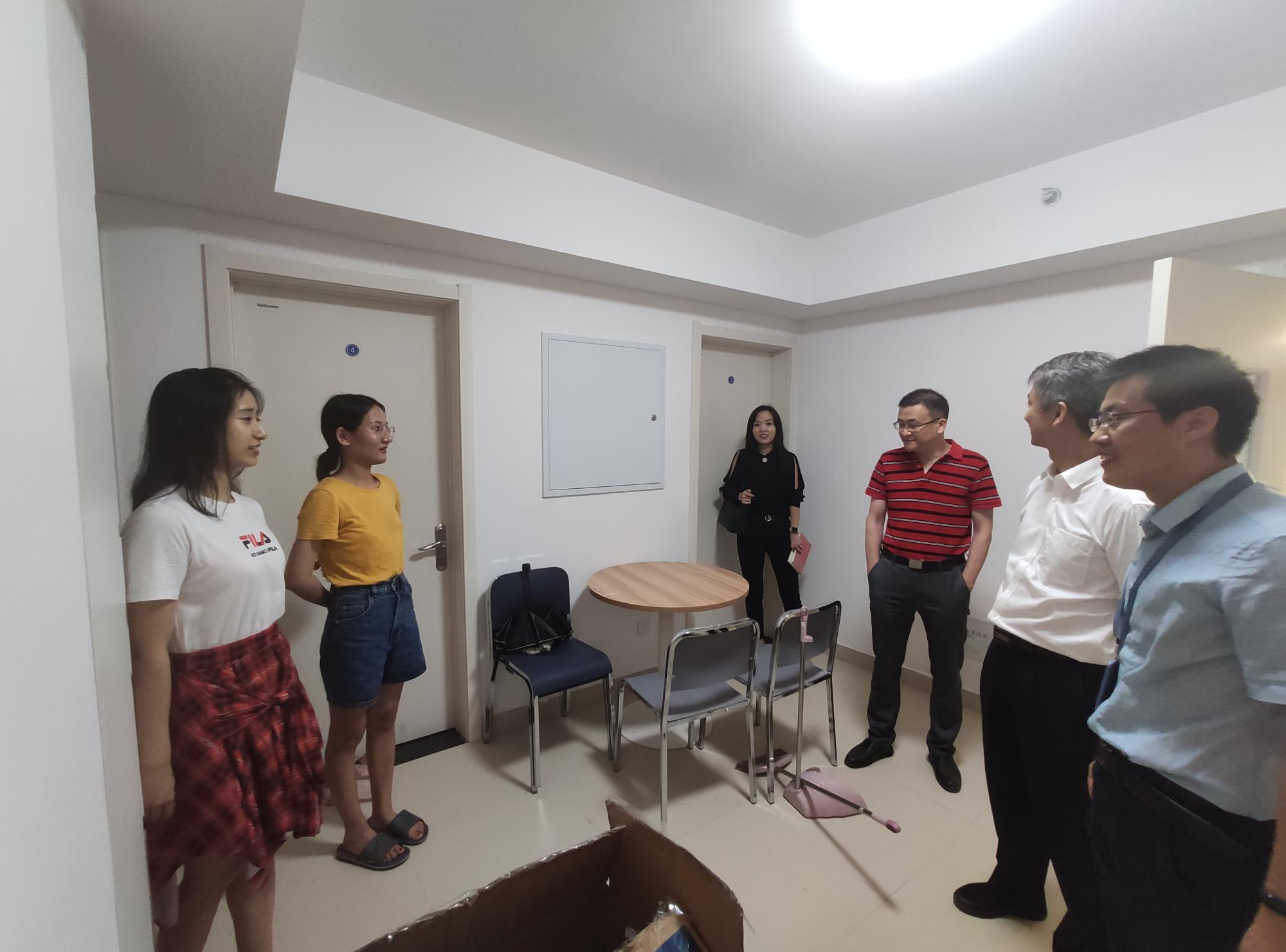 院长申胜平,党委书记李小跃,副书记陈永华,团工委书记、研究生辅导员李昱静在中国西部科技创新港朗园研究生宿舍走访慰问2020级研究生新生。