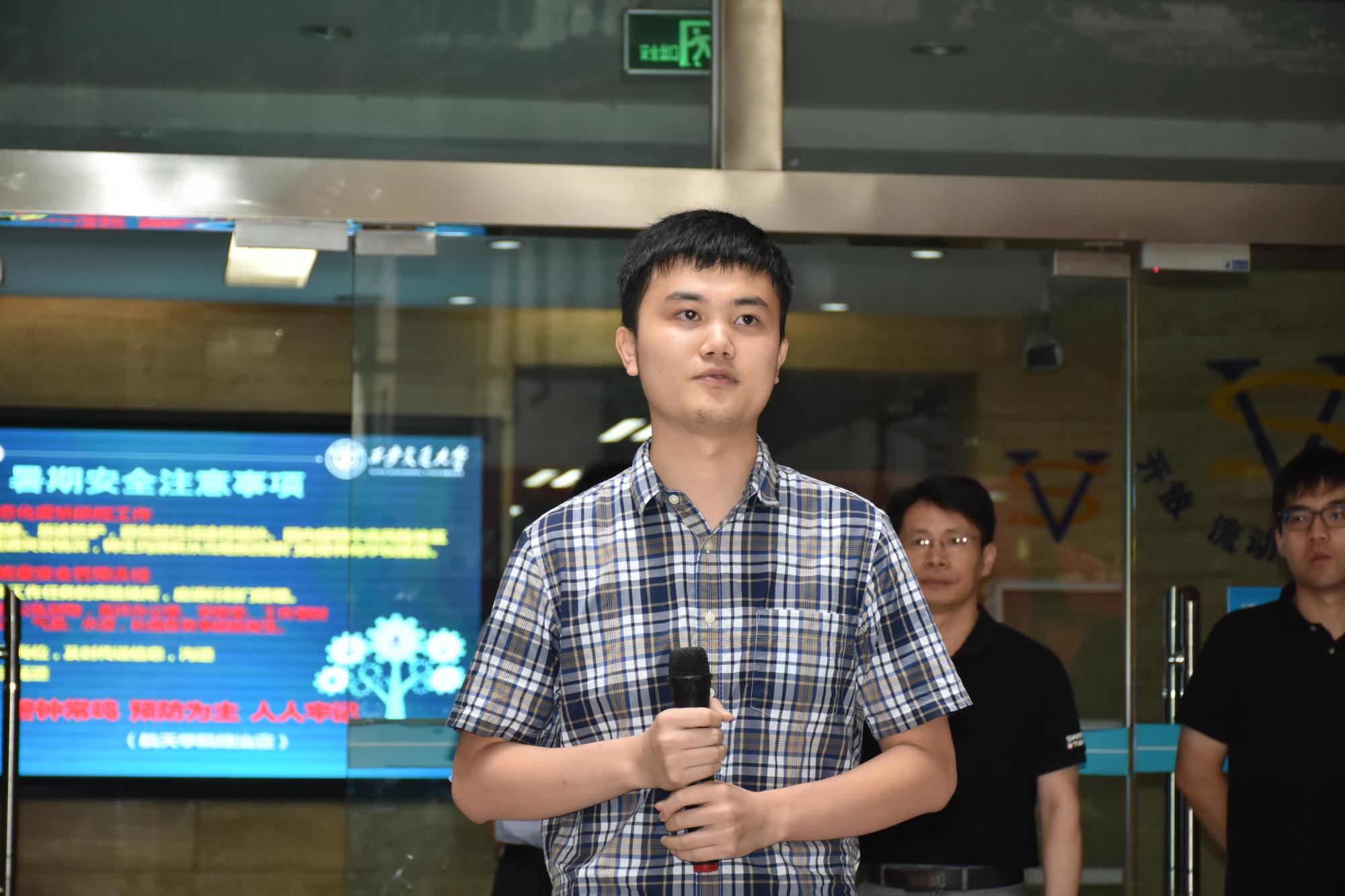 研究生代表硕8065班李鸿宇发言,他谈到,“‘士不可以不弘毅,任重而道远’,我们终归需要在困难中拓宽弘大的胸襟,磨砺坚毅的品格,才能壮实我们稚嫩的臂膀,在未来正真担负起新时代的国家社会发展重任。而今天我们向创新港进发,将会是我们作为新时代的新青年,在我们的奋斗长路中踏出的坚实的一大步。”