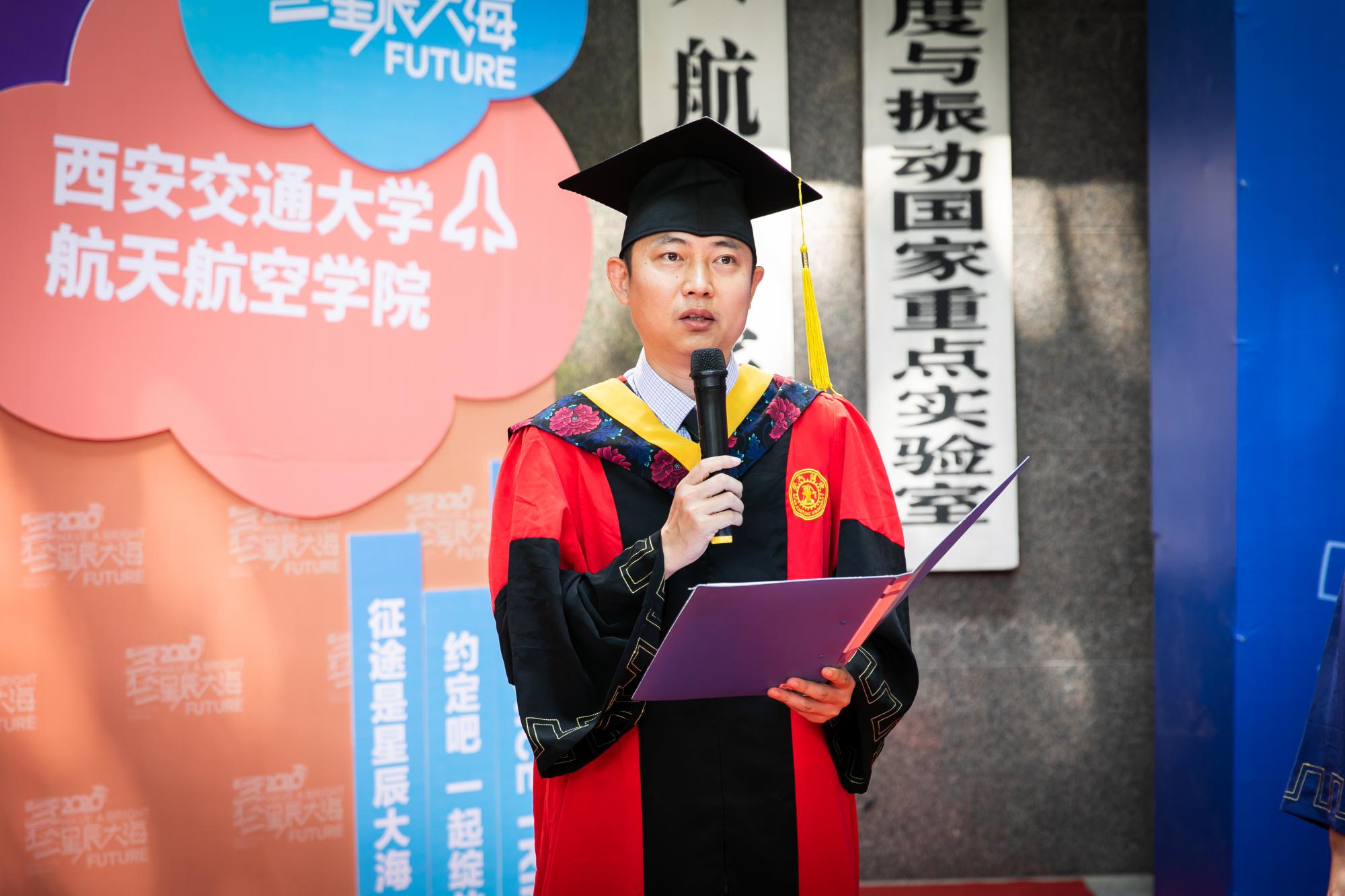 申胜平院长表达了对毕业生完成学位的祝贺,他谈到,“今天,无论你们是学士、硕士、博士,你们都要承担’士不可不弘毅”的使命,在当今纷繁复杂变化无常的世界格局中,保持理性,坚定梦想”。在未来的路上,如何坚守方向,保持定力,申院长用“三个坚信”寄语毕业生。第一是坚定的信仰,申院长援引唐照千教授的事迹,希望毕业生们怀着爱国主义信仰,坚定将西迁精神传扬下去,才能在奋斗路上坚持正确的方向,拼搏奋斗;第二是坚定的信念,申院长讲述了,优秀毕业生秦科科成长经历,希望同学们以优秀校友为榜样,坚定空天报国梦想;第三是坚定的信心,申院长列举校友王建忠艰辛的创业故事,勉励同学们遇见任何困难都不要失去信心。