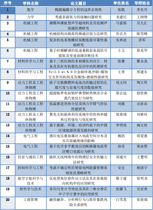 2019年西安交大获评陕西省优秀博士学位论文名单