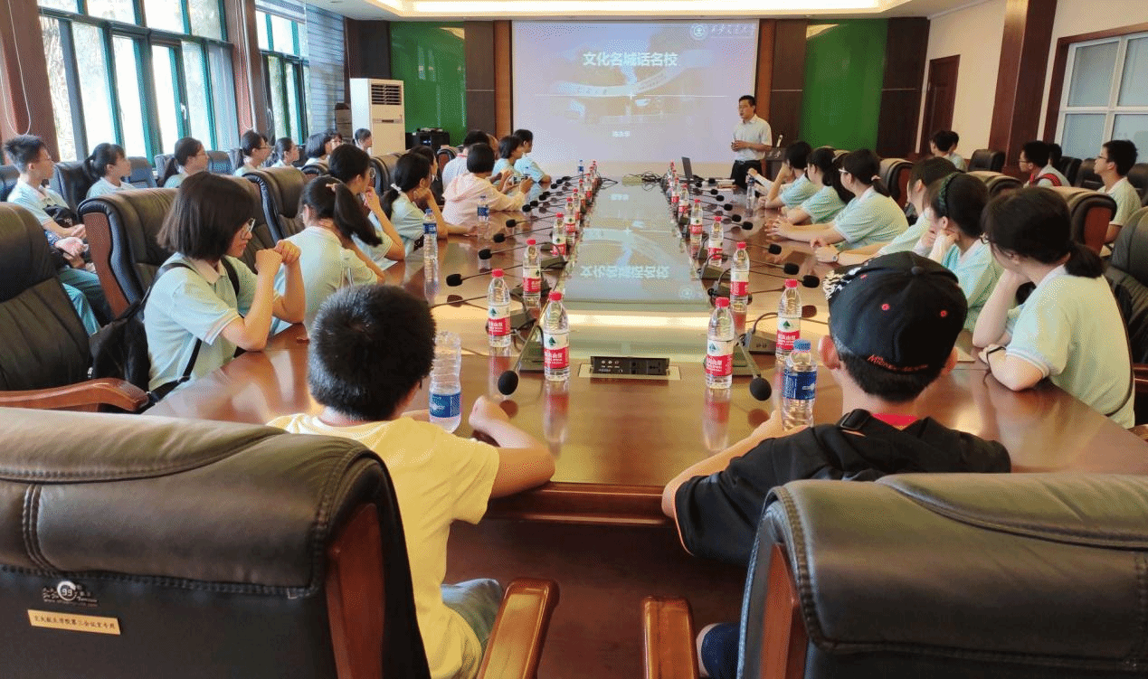 ,对大家选择来交大游学表示感谢。接下来陈永华老师做报告《文化名城话名校》,从西安的历史、文化、自然环境、美食、发展前景、交通等几个方面全面的介绍了这座文化名城,又通过交大的历史、科研成果、创新港、丝绸之路联盟、西迁精神、院士风采、招生方案、培养方案等方面的讲解全面展示了我校的内外风貌,让在座师生对西安和交大有了更深入的了解。