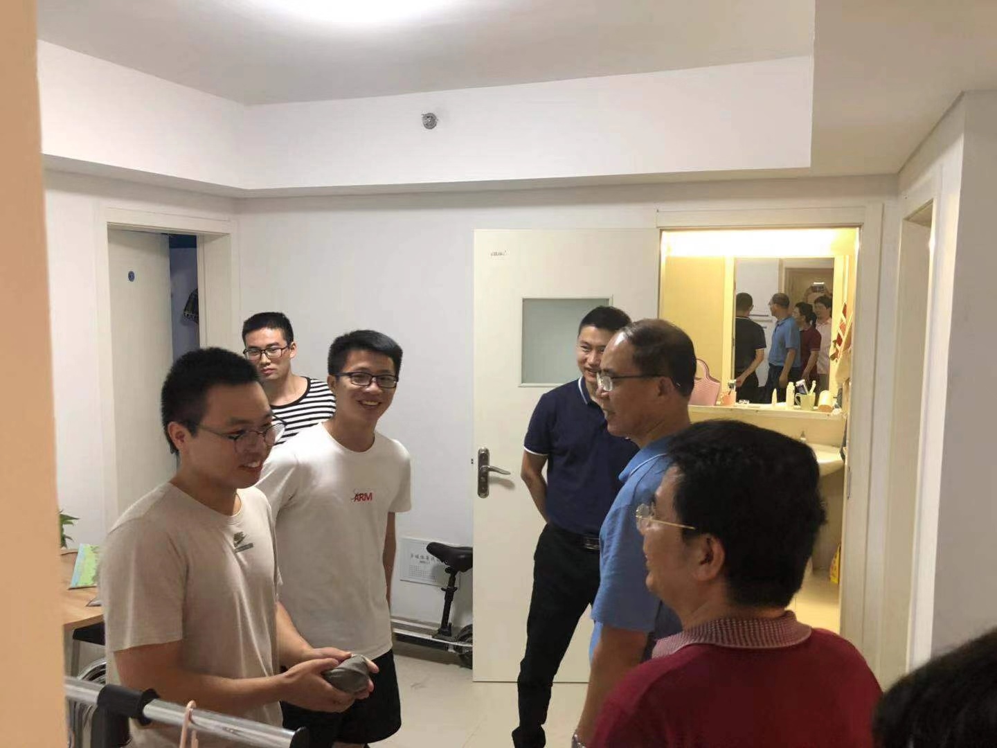 徐自力及各位领导亲切慰问了同学们入驻体验,新生们均表示对创新港的宿舍条件以及周边环境非常满意。