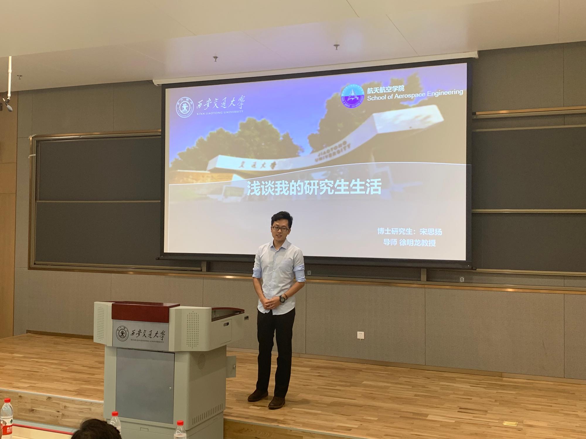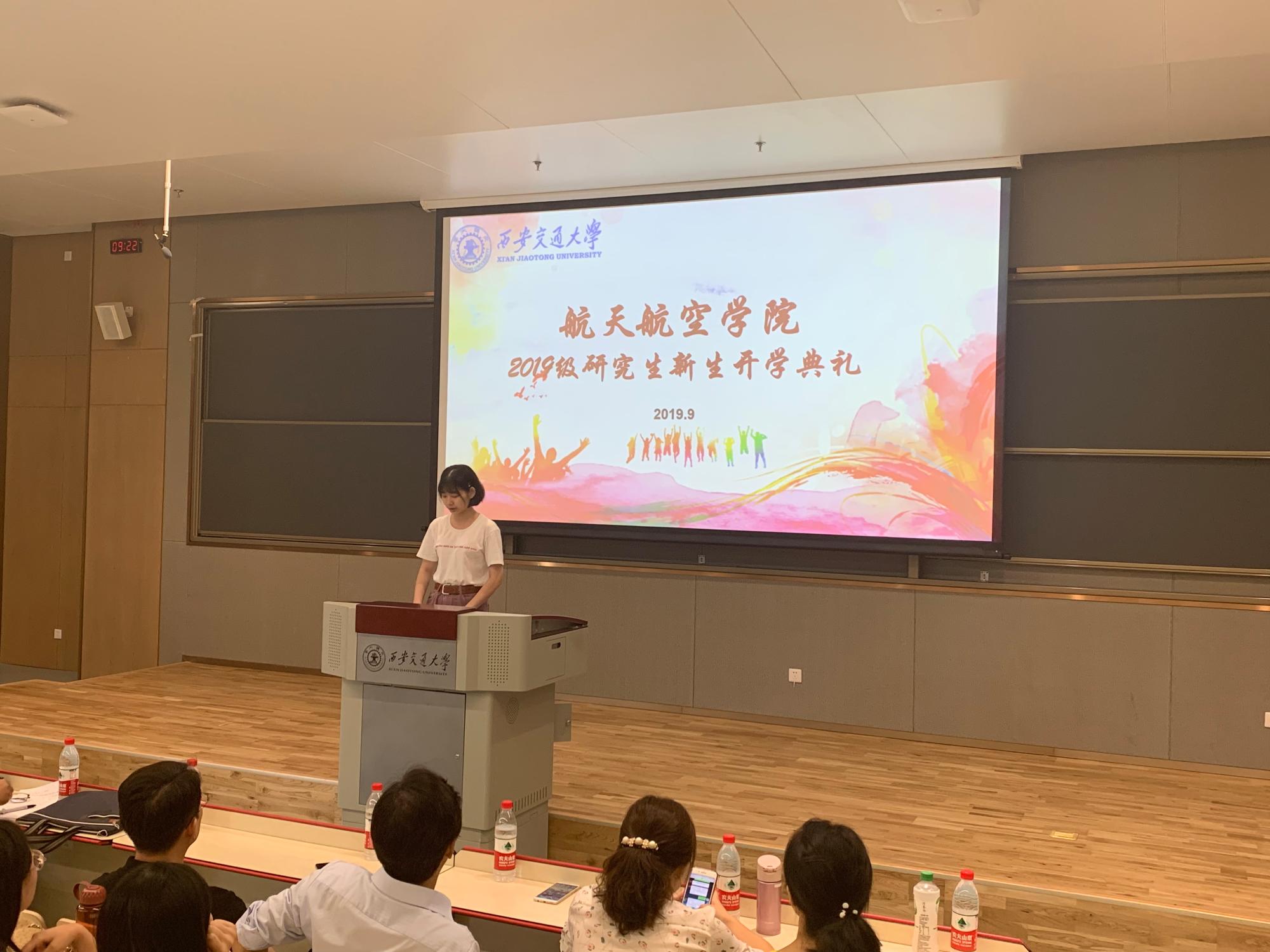 老生代表博1843班宋思扬同学围绕“浅谈我的研究生生活”,与研究生新生分享了他对于研究生生活该怎样度过的想法。当谈到自己在准备“互联网+”创新创业大赛期间所付出的努力时,他提醒新生们要以兴趣为导向,敢于吃苦、善于钻研,定能有所收获博1954班孙丹琪代表全体新生表示:“在这个更高的平台上,我们首先需要明确自己的目标,不断扩充自己的专业储备,努力培养自己的创新精神和科学观念。立足学科前沿,博采众长,上下求索。”