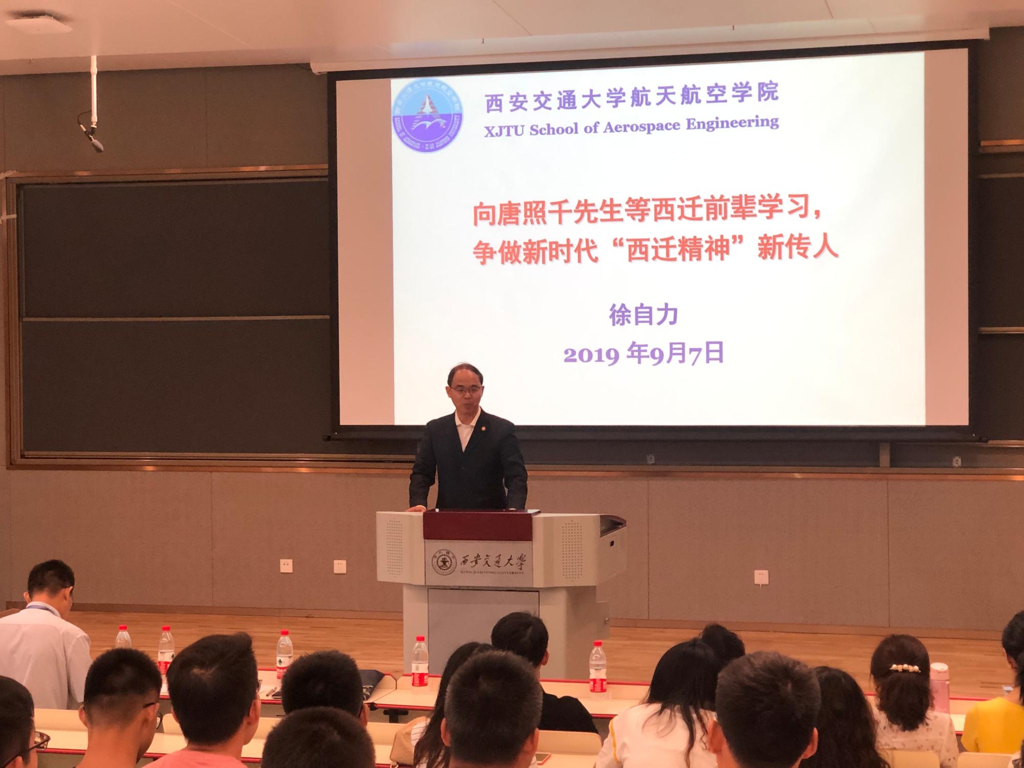 党委书记徐自力以《向唐照千先生等西迁前辈学习,争做新时代“西迁精神”新传人》为题做了总结报告。徐书记通过讲述西迁老教授给习总书记的信以及习总书记给老教授的回信为同学们解读了“西迁精神”的由来以力学先贤唐照千教授的生平事迹解释了“西迁精神”的内涵,鼓励同学们以唐照千教授等西迁老教授为榜样将爱国之志、报国之情融入到学习生活中,在新时代建功立业;徐书记还表达了对第一届入驻创新港的研究生的祝贺和希冀,祝愿他们在崭新的平台上努力学习、踏实科研,为建设社会主义现代化添砖加瓦。