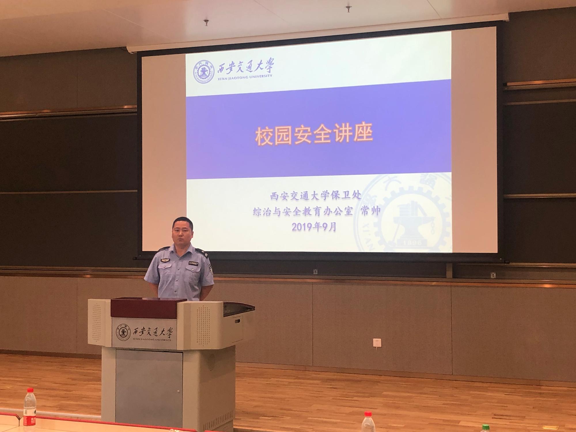 邀请保卫处常帅为2019级研究生开展了新生安全教育讲座。从人身安全、财产安全、消防安全、国家安全等方面入手,着重介绍了创新港的周边环境安全问题。他表示,“安全是研究生学习、科研、生活的重要保证,我们不仅要保证自身安全,更要保护社会安全、国家安全。”