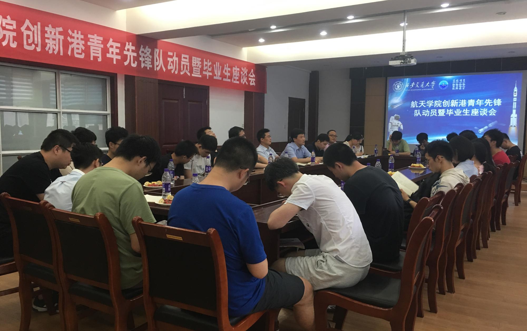 同学们结合在校学习、科研与生活经历发表感想。博士毕业生李云欣毕业后将前往国家重点单位中国工程物理研究院工作,他表达了对交大培养的感谢,寄语青年先锋队在研究生阶段勇于克服困难,善于沟通,做好人生规划。考取山西省定向选调生的马晓文同学表达了自己即将奉献社会、服务基层的决心,号召更多的同学努力学习来回馈社、回报母校。创新港青年先锋队代表、本科毕业生孙丹琪同学表达了对交大多元实践平台给予的帮助和成长,号召同学们共同在高质量环境的创新港担负创新港的历史任务,创造更好的成绩。接着毕业生纷纷介绍工作学习去向,并对其他关心的问题同老师们进行了深入交流。