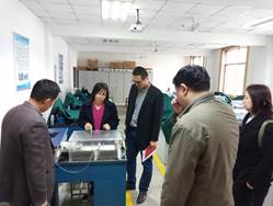 示范中心徐志敏老师、张改慧老师分别为考察团介绍理论力学实验室及振动测试实验室。考察团对我中心研制开发的动态力学量测试设备给予了的极大肯定。