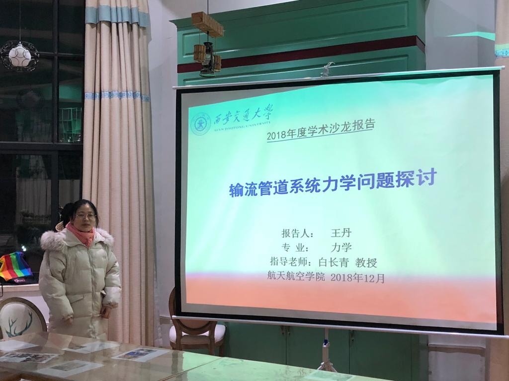 博士生,连续两年荣获西安交通大学优秀研究生荣誉称号。王丹就输流管道系统力学问题和大家进行了分享和探讨,输流管道系统在工程中十分常见,其力学特性将直接影响设备仪器的运行性能和动态性能,管道系统的智能化成为必然趋势。王丹从复杂输流管道振噪特性的研究、输流管流阻压降问题、输流管路控制方法、输流管道多场耦合动力学研究四个方面进行了讲解,为大家直观的讲述了输流管道目前的研究重点及存在问题。