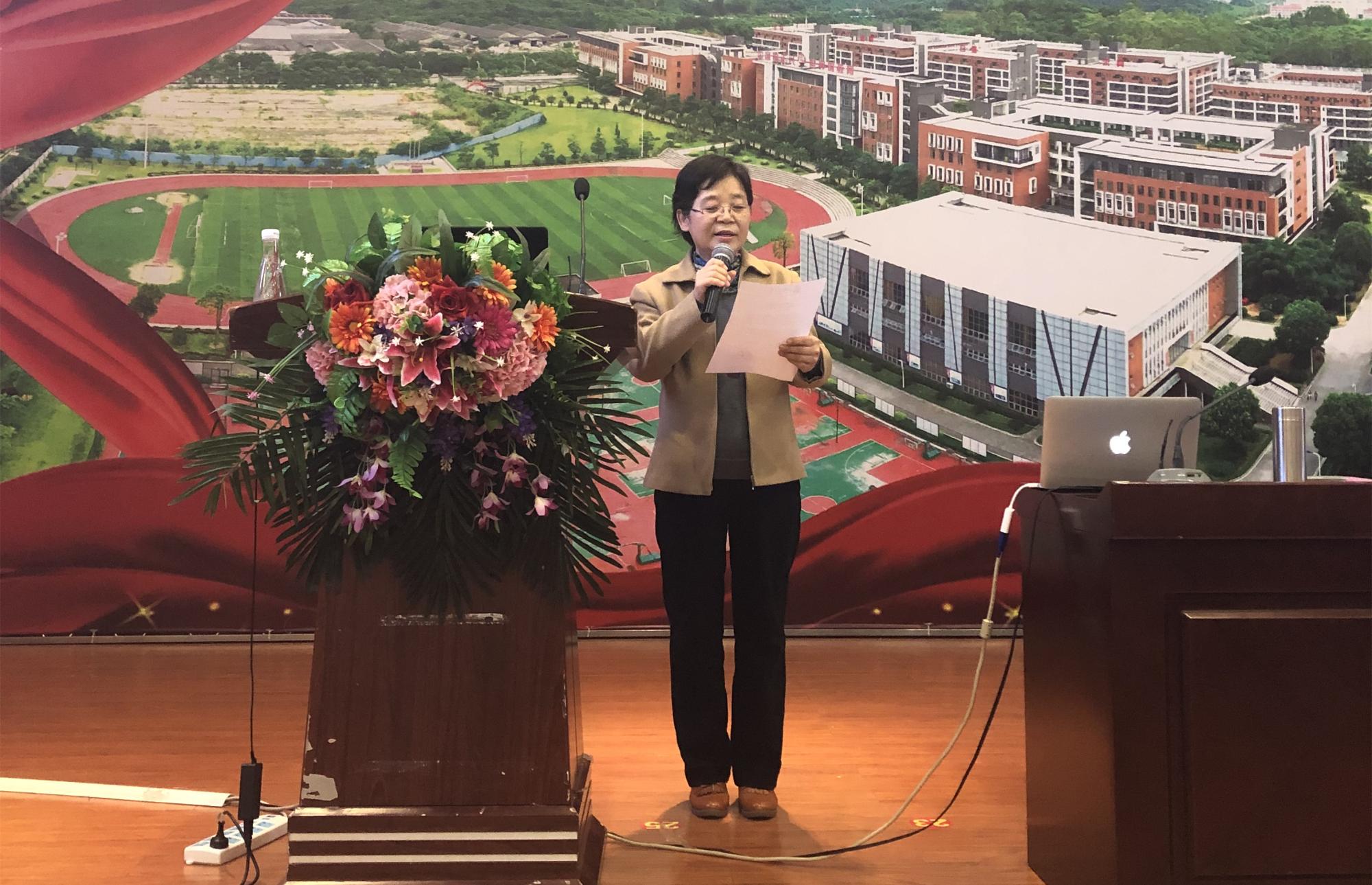 福建招生组副组长陈玲莉教授代表学校宣读《优秀生源基地授牌决定》并致辞。漳州实验中学办学12年来,为西安交通大学输送了诸多优秀学子,今后两校将继续加强合作和交流,密切两校关系。