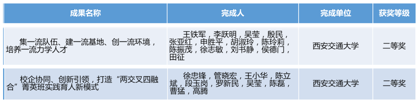 近日,教育部公布了2018年国家级优秀教学成果评审结果,网上赌博网站大全 2项成果荣获国家级教学成果奖二等奖:其中1项是主持项目(王铁军教授等《集一流队伍、建一流基地、创一流环境,培养一流力学人才》);1项为参与项目(吴莹(排名第七)《校企协同、创新引领,打造“量交叉四融合”菁英班实践育人新模式》)