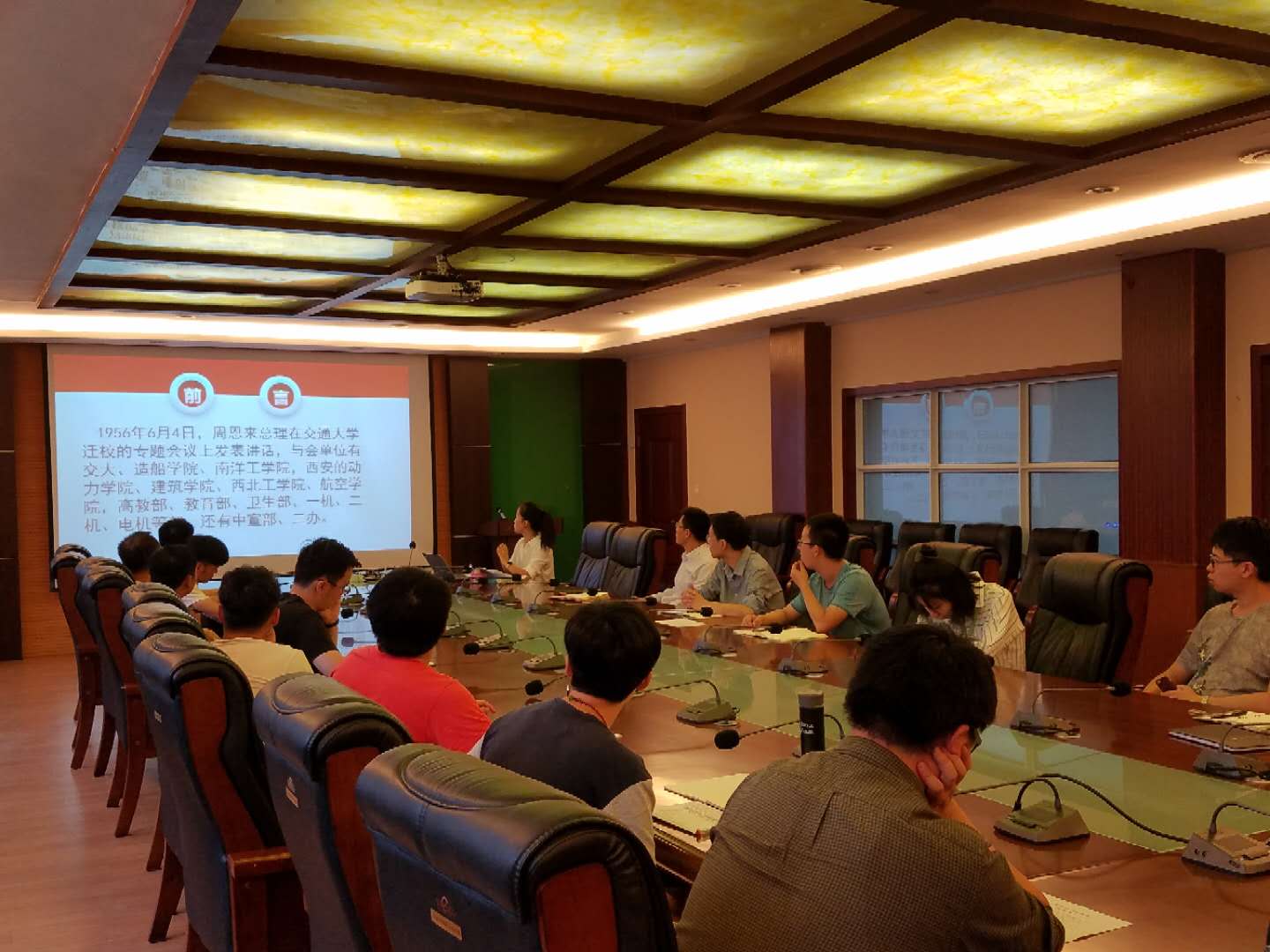 李昱静老师结合《关于在广大知识分子中深入开展“弘扬爱国奋斗精神、建功立业新时代”活动》通知内容要求,带领大家学习习近平总书记关于传承和发扬西迁精神的重要指示,回顾了总书记对西安交大15位老教授来信做出重要指示以及在2018年新年贺词中对交大西迁老教授的肯定的内容,通过《周恩来总理在国务院关于交通大学迁校专题会议上的讲话》原文讲读,感悟西迁前后交大所面对的困难以及西迁之于国家建设与交大发展的重要意义。最后,李老师安排部署2018年“向西迁致敬”主题宣传月活动,要求各支部充分认识开展活动的重要意义,精心策划主题明确的学习实践活动,并加强组织引导,确保活动时效。