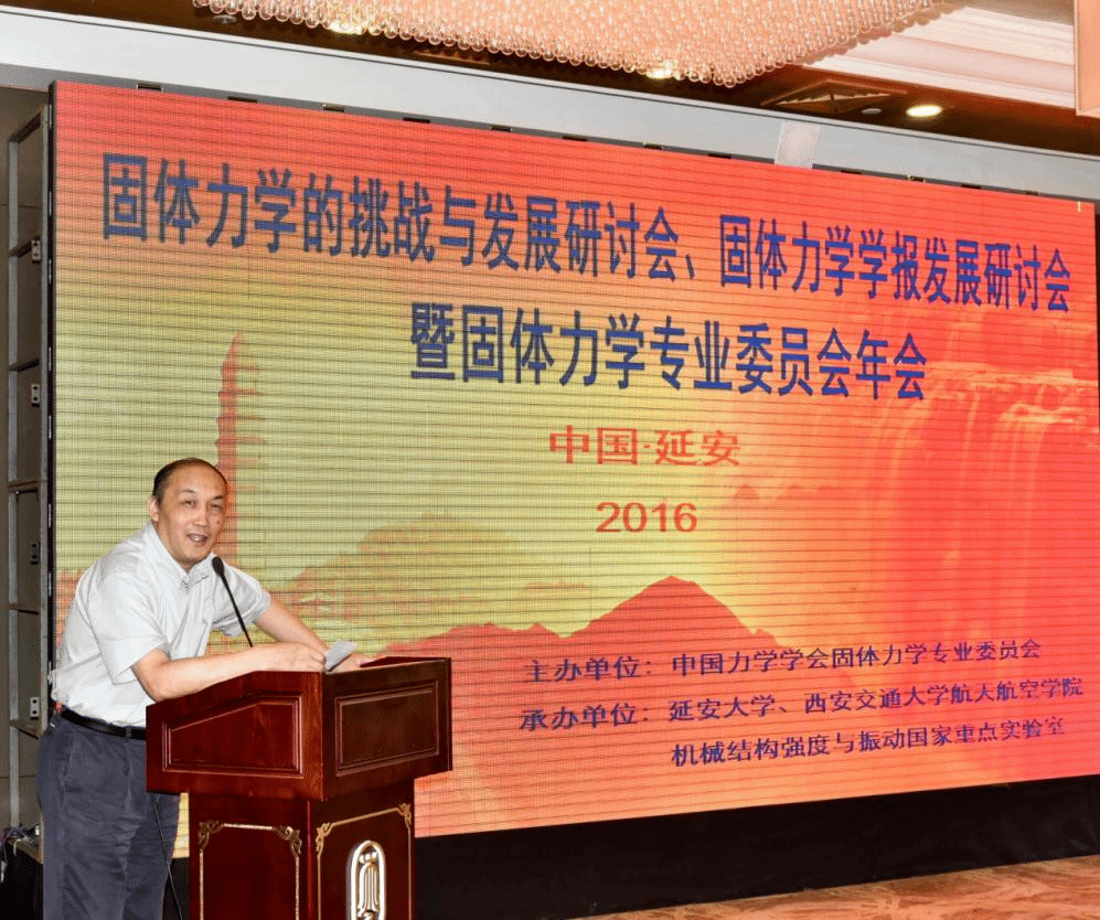 、机械结构强度与振动重点实验室承办的“2016年固体力学的挑战与发展研讨会暨固体力学专业委员会年度会议”于2016年8月7日-9日在延安召开。参会人员包括固体力学专业委员会委员、固体力学学报编委会成员、国家杰出青年获得者以及国内外特邀专家共60余位。本次会议旨在重视固体力学面临的挑战,研讨固体力学的本质科学问题,拓展新的研究生长点,提高结合工程开展研究和解决工程问题的能力,推动固体力学的发展。
